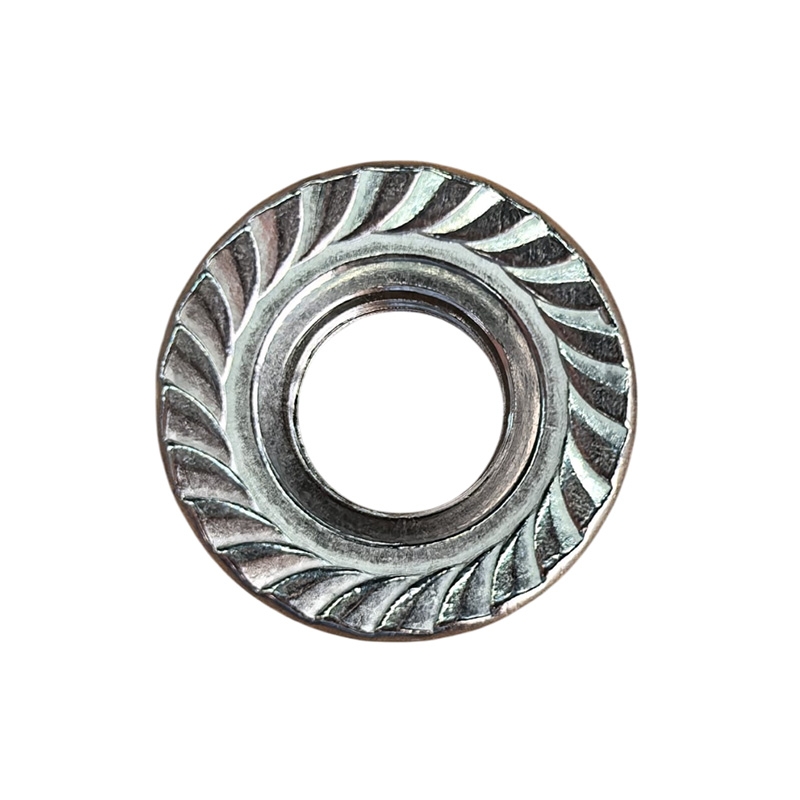Гайка с фланцем это обычная шестигранная гайка в нижней части которой выполнено уширение (буртик) с насечками или без них. Применение гаек с фланцем значительно ускоряет процесс сборки, поскольку не требуется время на подкладывание шайбы. Фланец по диаметру больше гайки. Фланцевые гайки находят широкое применение в автомобилестроении, при производстве бытовых инструментов и техники, оборудования для пищевой, химической промышленности. Крепеж изготавливается из нержавейки А2 или А4, могут подвергнуть газотермическому цинкованию.