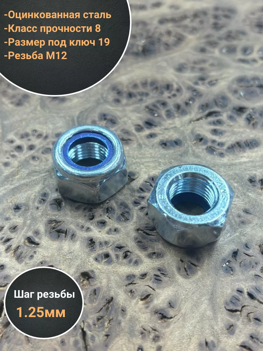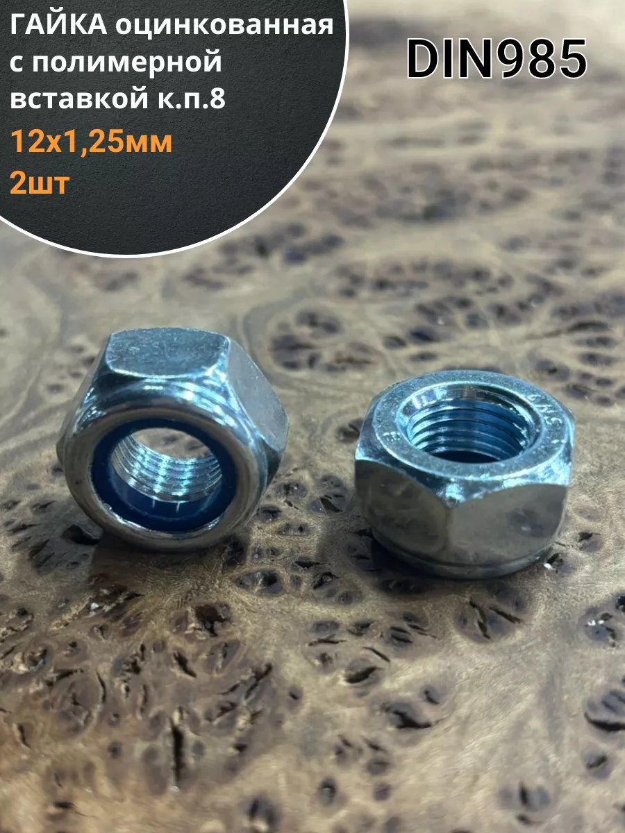 Гайка с полимерной вставкой к.п.8 М12х1,25 ОЦ DIN985 2 шт