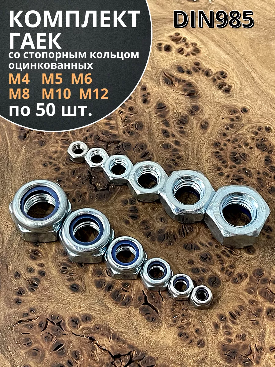 Гайка со стоп кольцом М4,5,6,8,10,12 ОЦ DIN985 (по 50 шт)