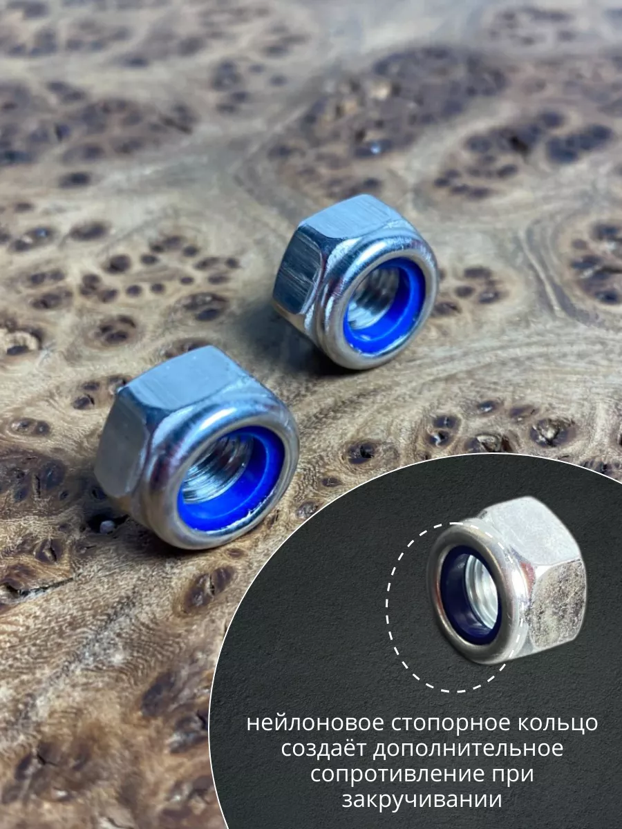 Стопорная самоконтрящаяся гайка DIN 985 с нейлоновым кольцом из нержавеющей стали А2 используется в машиностроении, приборостроении и прочих промышленных, производственных, строительных отраслях совместно с болтами, винтами или шпильками соответствующего размера резьбы.