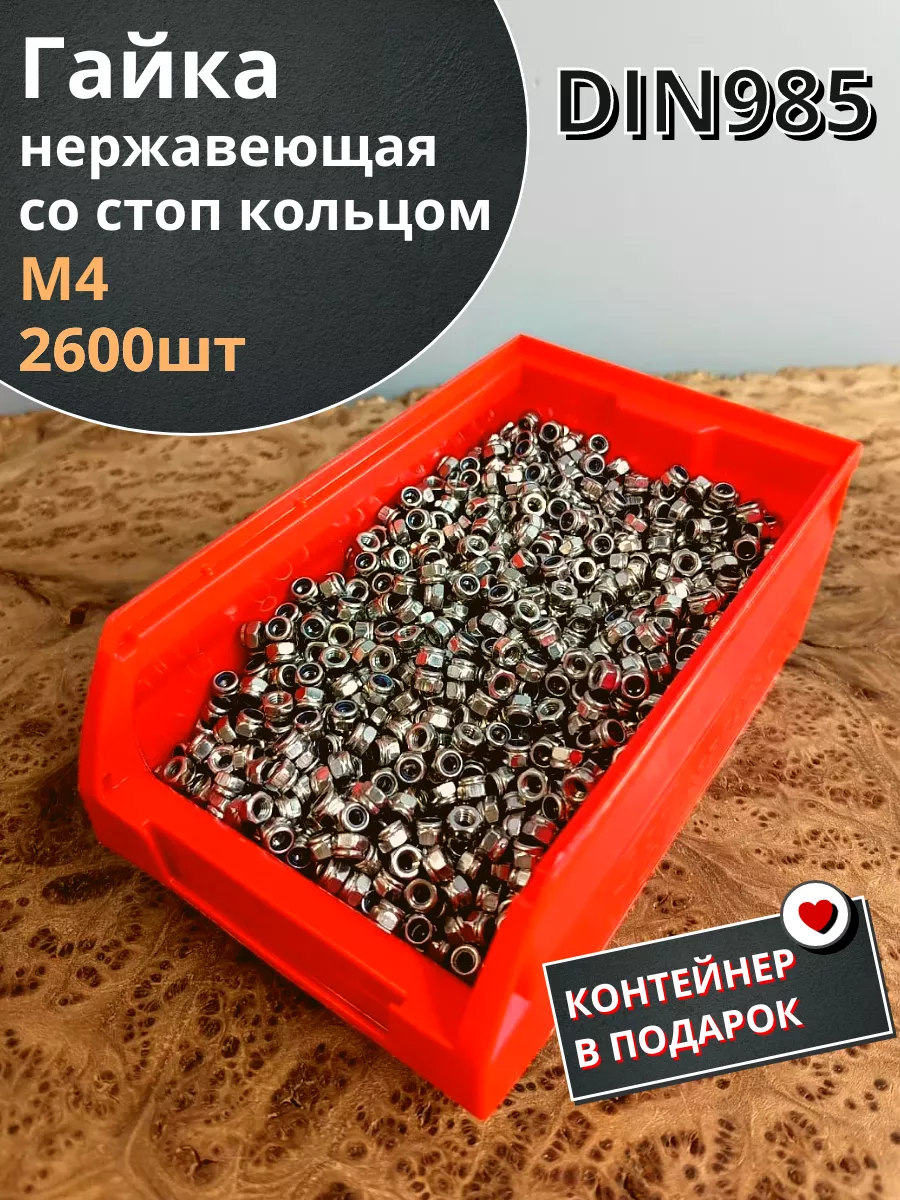 Гайка со стоп кольцом М4 нержавеющая,DIN985,2600шт.контейнер