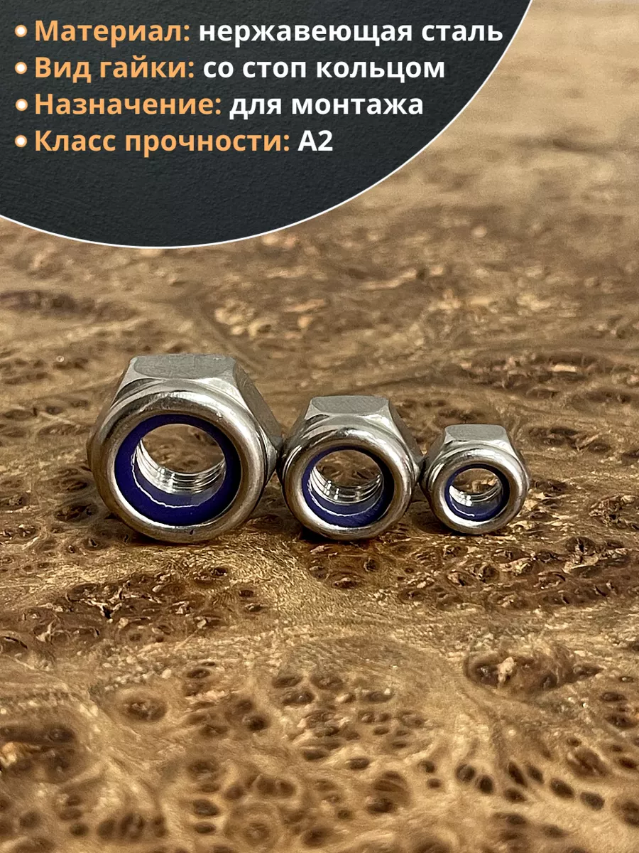 | Гайка со стоп кольцом М6,8,10 нержавеющая (набор по 50шт) | 11617 | 1 шт. |