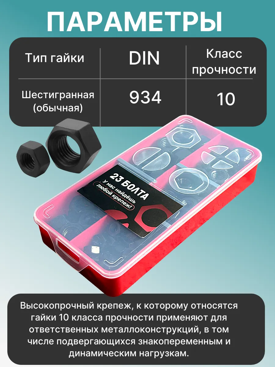 Гайки к.п.10 черные М8,10,12,14,16 в органайзере НАБОР 1
