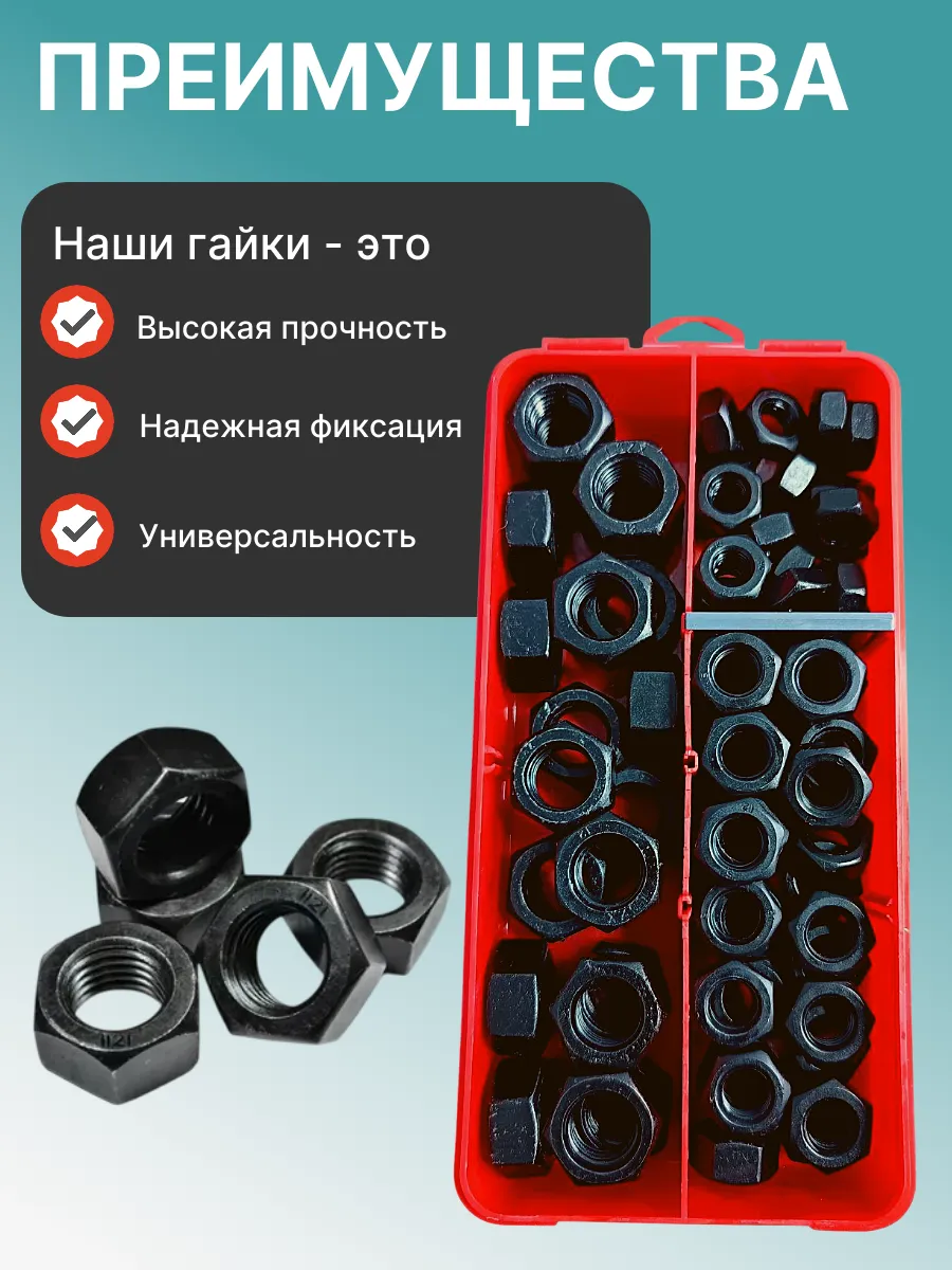 Гайки к.п.12.9 черные М10,12,16 в органайзере НАБОР 1