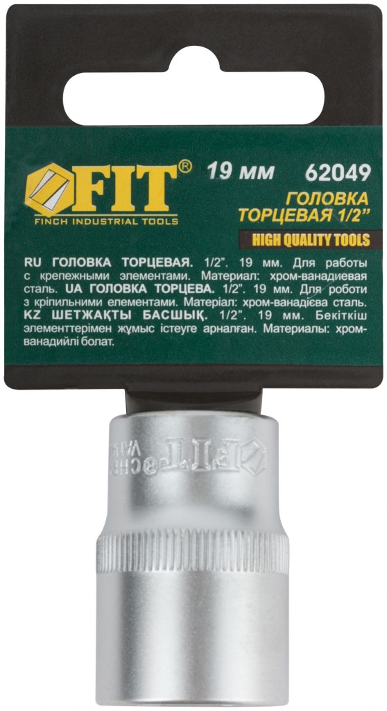 Головка 6-гранная crv 1/2" 19 мм, 1/2". Материал: хромванадиевая сталь. Упаковка: пластиковый подвес.