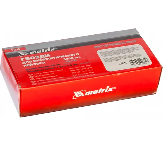 Гвозди Matrix 57610, тип 16GA, предназначены для пневматических нейлеров, работающих с оснасткой размером 30 х 1,25 х 1 мм. Они обеспечивают быстрое и точное соединение деревянных деталей, помогают зафиксировать на деревянных и металлических поверхностях ткань, элементы дизайна, фурнитуру.