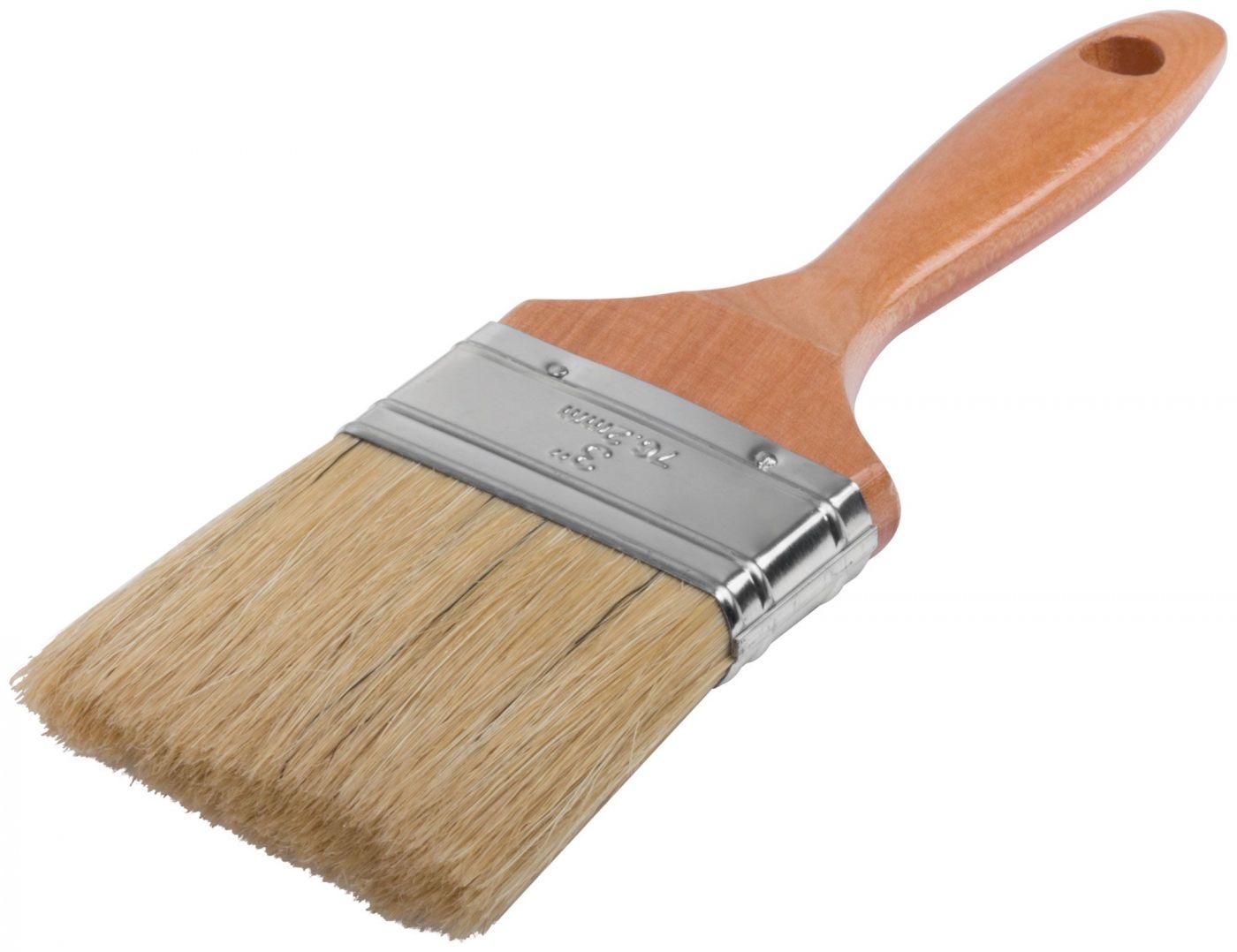 Профи. Для работы со всеми видами лакокрасочных материалов. Натуральная светлая щетина, деревянная ручка, 3" (75 мм).