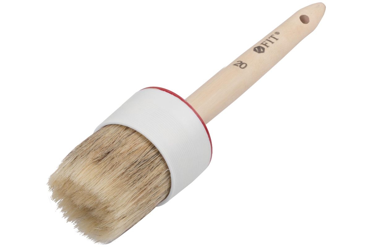 Кисть круглая, натуральная светлая щетина №20 (65 мм). Для работы со всеми видами лакокрасочных материалов. Натуральная светлая щетина, пластиковый корпус, деревянная ручка.