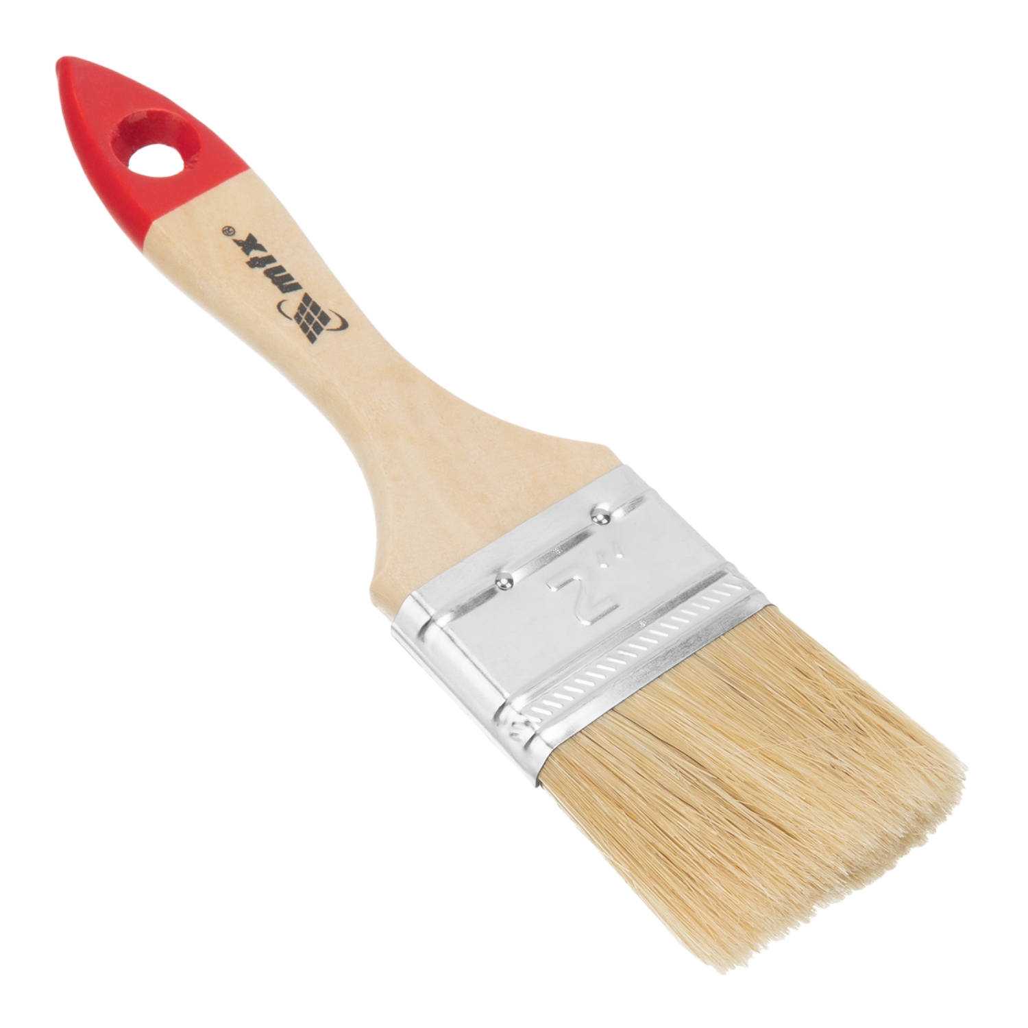 Плоская кисть MTX «Стандарт» 82530 шириной 2 дюйма (50 мм), с натуральной щетиной и деревянной ручкой, — инструмент для проведения бытовых малярных работ. Натуральная светлая щетина обладает высокой износоустойчивостью и подходит для нанесения красок на основе растворителей. За счет ширины 50 мм кисть подходит для окрашивания узких поверхностей, например, рам.