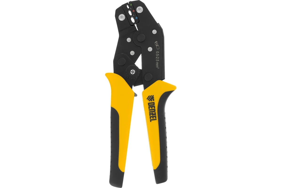 Клещи для обжима изолир. наконечников НКИ, НВИ разъемов РПИ гильз ГСИ 0,5-2,5кв.мм Denzel