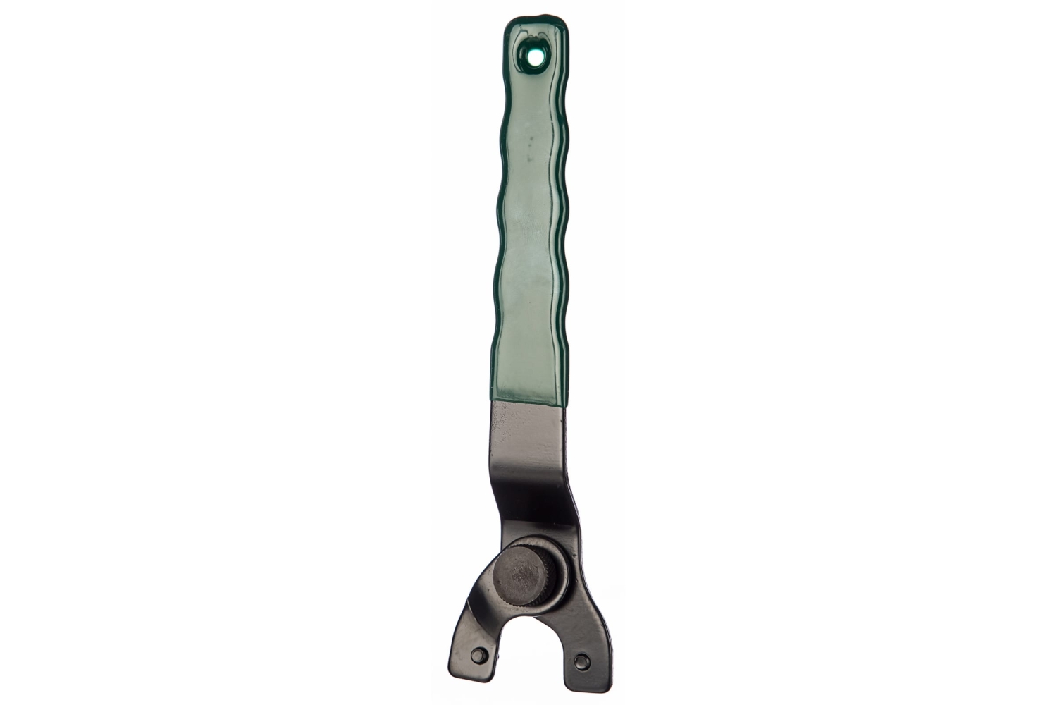 Фланцевый универсальный ключ служит для затяжки и снятия резьбовых фланцев, применяемых в ручном инструменте и строительной технике. Он изготовлен из прочной стали и имеет удобную, слегка изогнутую рукоятку с пластиковым покрытием. Конструкция ключа позволяет быстро настраивать его с помощью винтового фиксатора под отверстия фланцевых гаек с расстоянием между ними от 12 до 50 мм.
