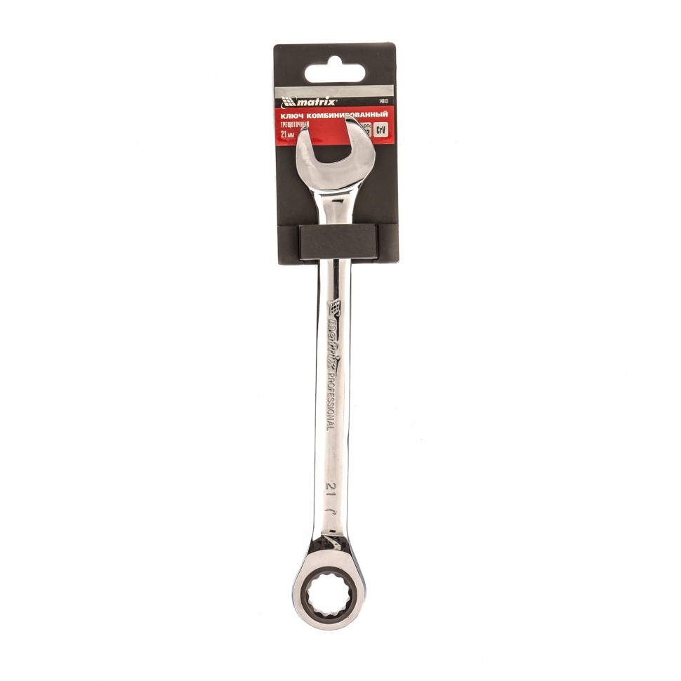 Ключ комбинированный трещоточный зеркальный хром 21 мм CrV Matrix