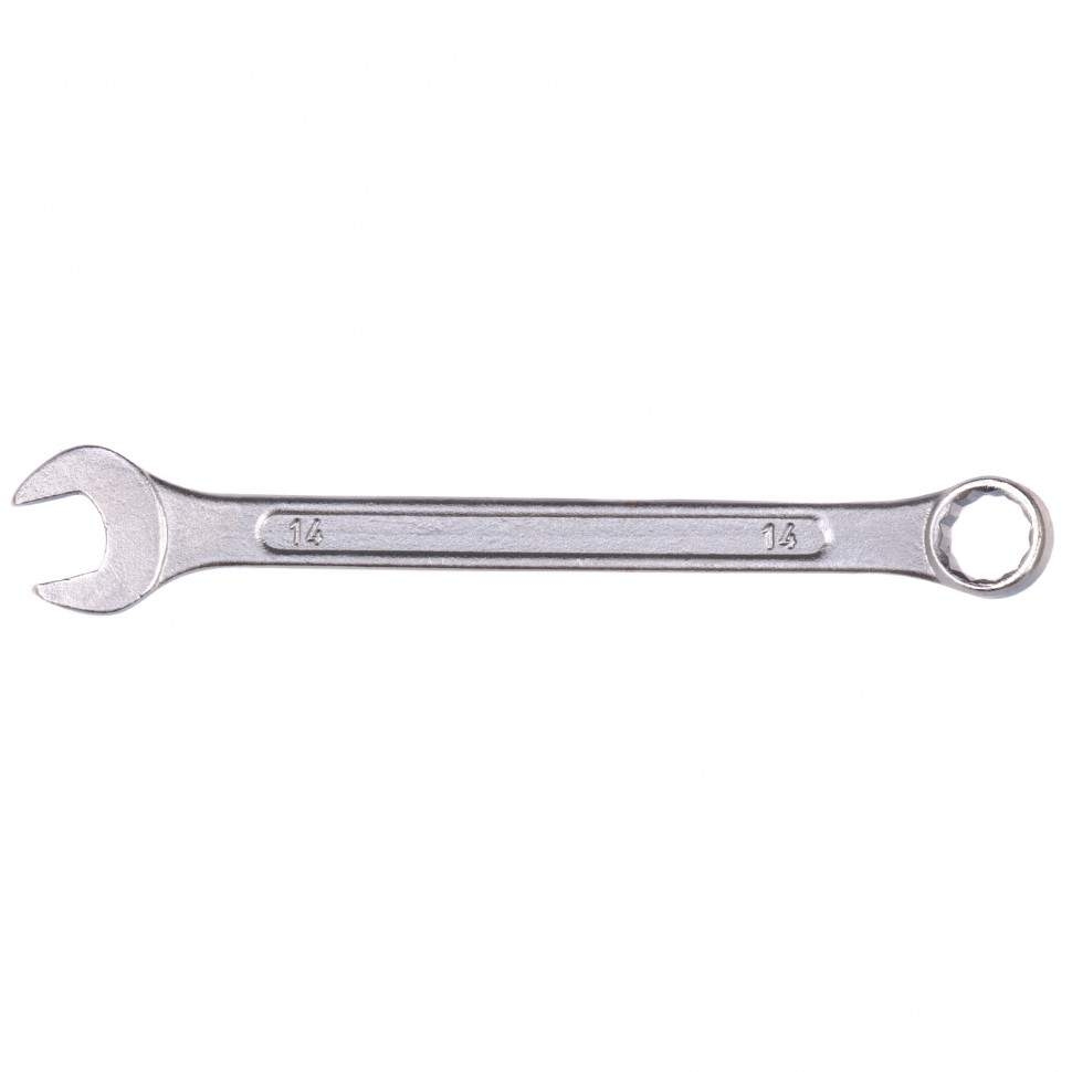 Комбинированный ключ Sparta 150415, 14 мм, хромированный — слесарно-монтажный инструмент для работы с резьбовыми соединениями. 12-гранная накидная головка обеспечивает надежный контакт с поверхностью крепежа, а рожковый зев дает возможность работать там, где применение кольцевого затруднено. Ключ пригодится в мастерской, гараже, будет полезен во время строительства и ремонта. Ключ изготовлен из углеродистой стали марки 45, чем обеспечивается его прочность и хороший ресурс.