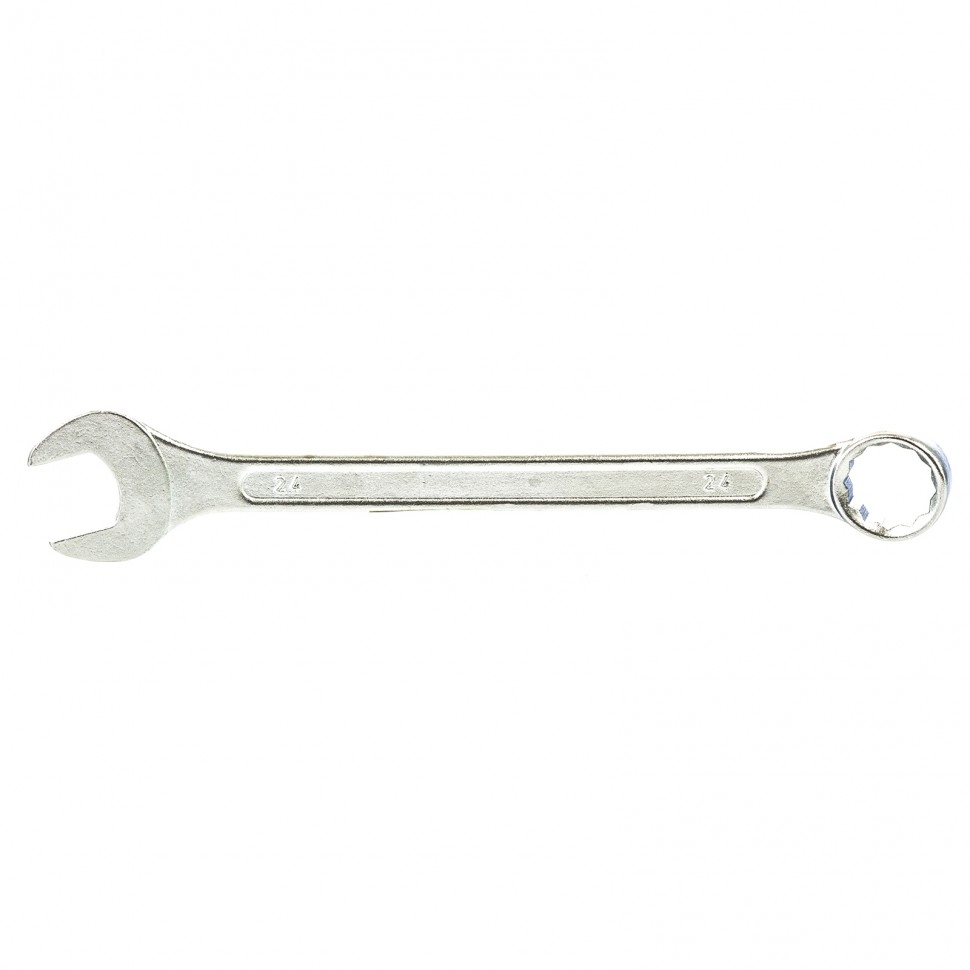Комбинированный ключ Sparta 150525, 24 мм, хромированный — слесарно-монтажный инструмент для работы с резьбовыми соединениями. 12-гранная накидная головка обеспечивает надежный контакт с поверхностью крепежа, а рожковый зев дает возможность работать там, где применение кольцевого затруднено. Ключ пригодится в мастерской, гараже, будет полезен во время строительства и ремонта. Ключ изготовлен из углеродистой стали марки 45, чем обеспечивается его прочность и хороший ресурс.