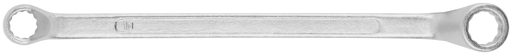 Ключ данного типа делают в виде Г-образного воротка с жестко закрепленными на концах рукоятки рабочими головками разного размера. Наличие колена разрешает данный накидной изогнутый ключ использовать для откручивания крепежа, установленного даже в труднодоступных местах. Кольцевой зев благодаря гнутому профилю изделия располагается на некотором удалении от рукоятки. При работе с таким инструментом пальцы не будут задевать поверхность вблизи головки болта или гайки. «Хард». Материал: инструментальная сталь, хромированное покрытие.
