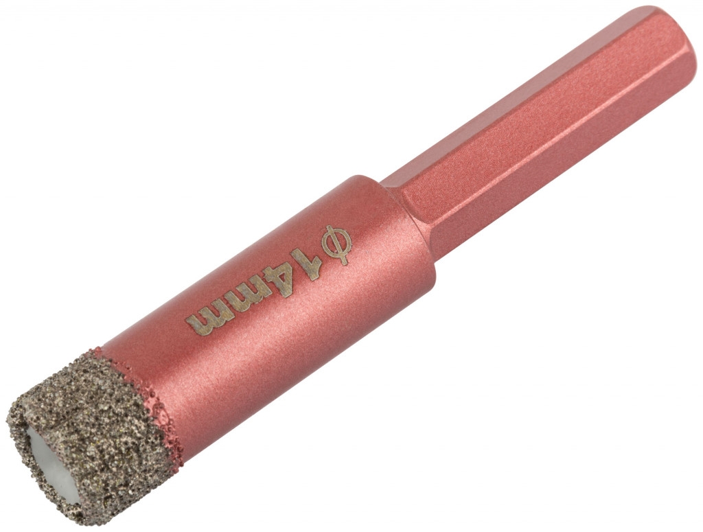 Коронка алмазная универсальная с шестигранным хвостовиком предназначена для дрели. Применяется для сухого сверления керамогранита, мрамора, шлакоблока, кирпича, плитки, стекла, дерева и т д. Внутри коронок используется специальный охлаждающий материал(воск), что значительно увеличивает ресурс. Материал: инструментальная сталь, технические алмазы, воск. Упаковка: блистер.