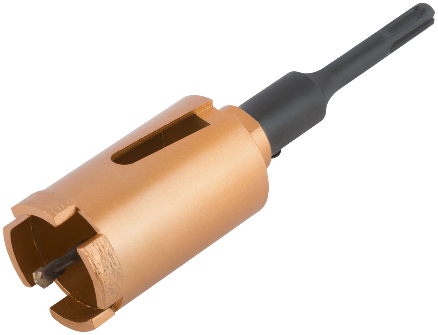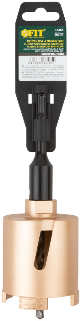 Коронка алмазная с центрирующим сверлом и хвостовиком SDS-PLUS. Для безударного сверления отверстий под монтажные коробки в бетоне и кирпиче. Для работы с водяным охлаждением. Материал: корпус из инструментальной стали, хвостовик и центрирующее сверло из легированной стали, режущая кромка содержит порошок из технических алмазов. Упаковка: пластиковый подвес.