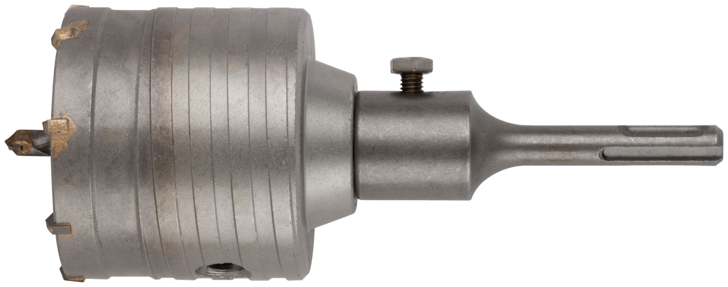 Хвостовик 110 мм. В сборе. Для перфоратора. Для ударного сверления отверстий в бетонных, кирпичных и каменных стенах. Материал: хвостовик и центрирующее сверло легированная инструментальная сталь с добавлением хрома, корпус инструментальная сталь, твердосплавные резцы из карбида вольфрама. Упаковка: пластиковый подвес.