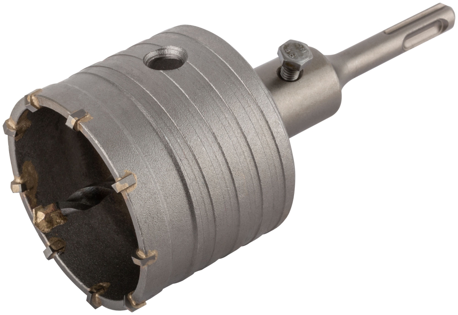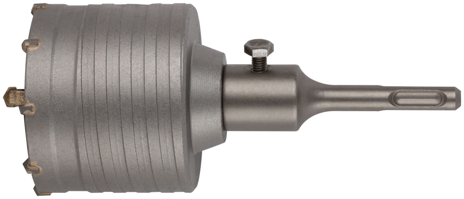 Хвостовик 110 мм. В сборе. Для перфоратора. Для ударного сверления отверстий в бетонных, кирпичных и каменных стенах. Материал: хвостовик и центрирующее сверло легированная инструментальная сталь с добавлением хрома; корпус инструментальная сталь; твердосплавные резцы из карбида вольфрама. Упаковка: пластиковый подвес.