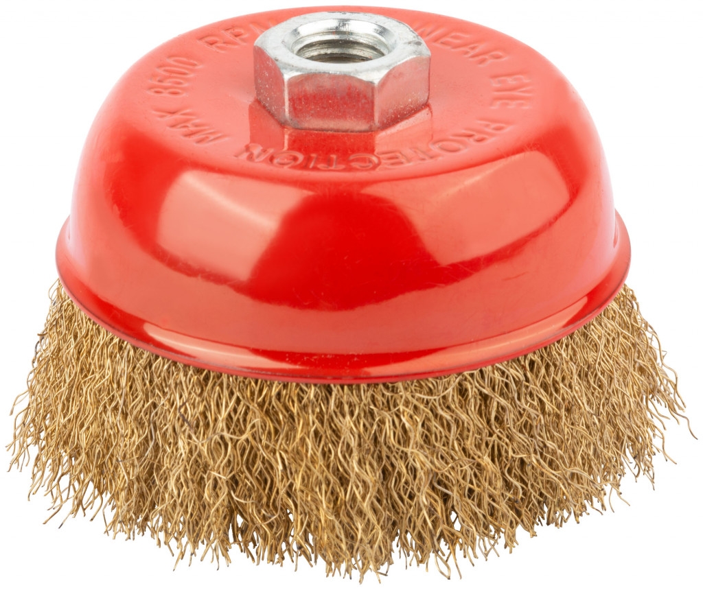 Тип «чаша». Для УШМ. С гайкой М14. Материал: стальная латунированная проволока. Упаковка: картонная коробка.