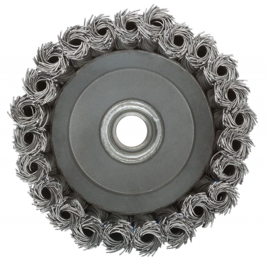 Тип «чашка». Для УШМ. Для очистки поверхностей от краски и ржавчины. Гайка М14. Витая проволока. Материал: инструментальная сталь. Упаковка: картонная коробка.
