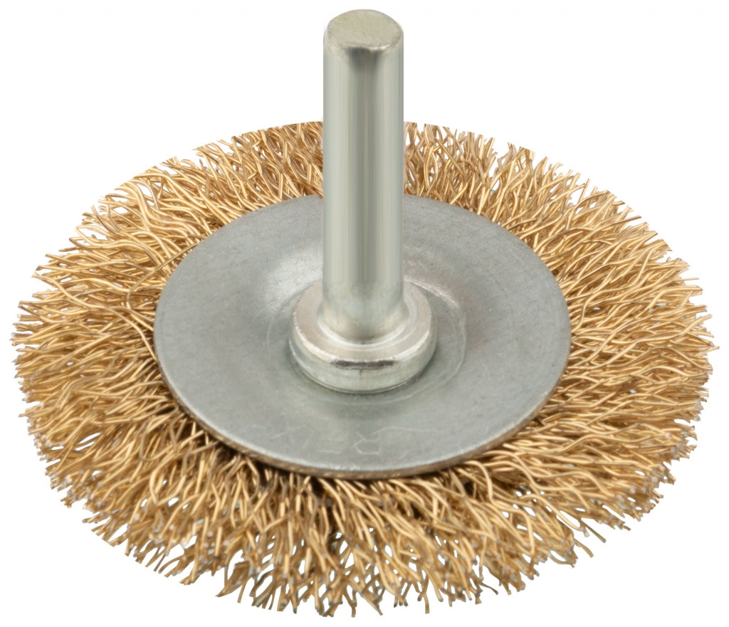 Корщетка-колесо, со штифтом, стальн.латунир.волнист.проволока 100 мм.