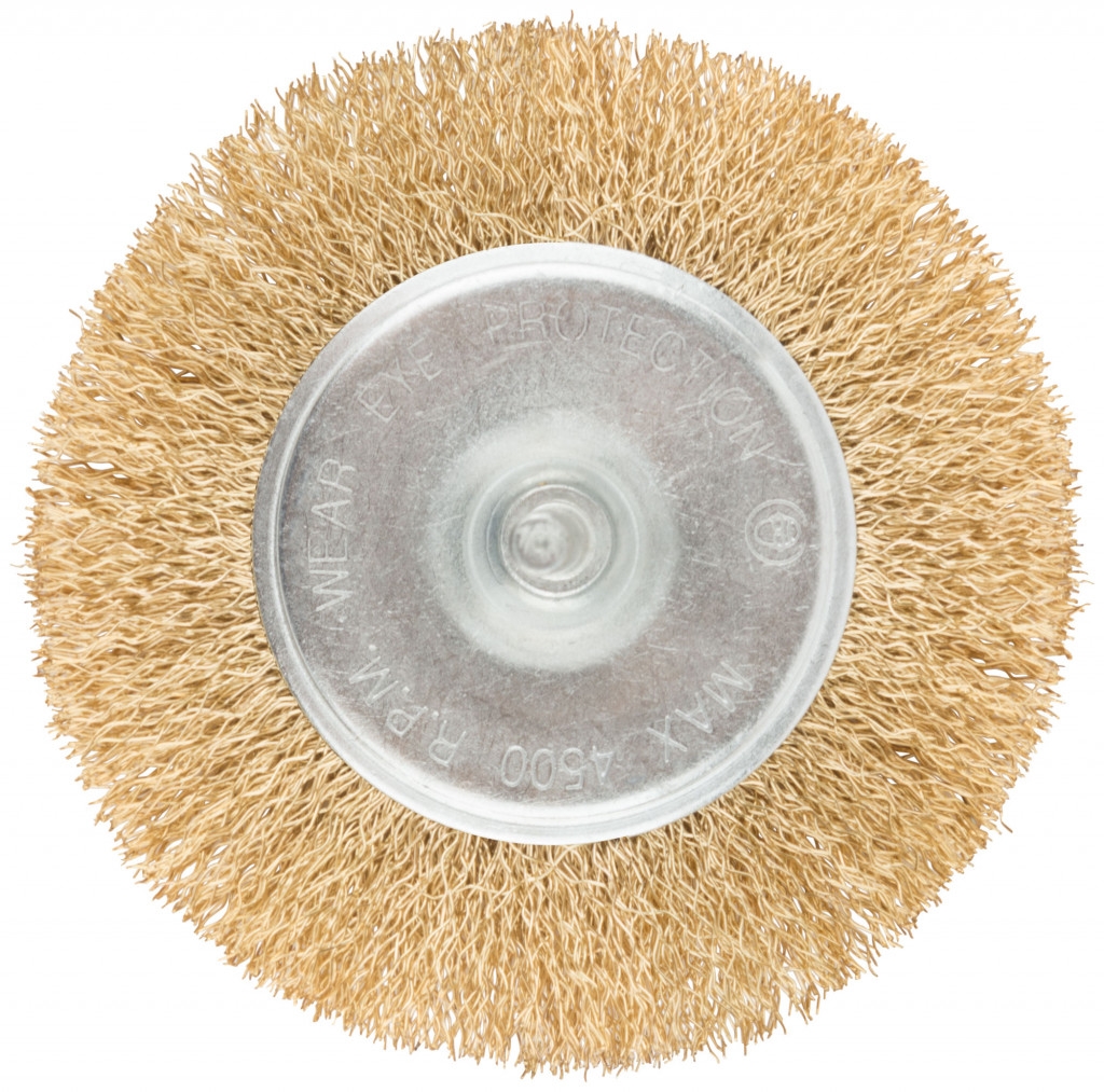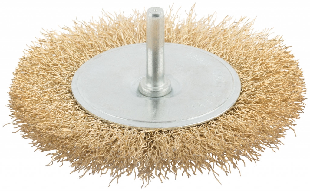 Корщетка-колесо, со штифтом, стальн.латунир.волнист.проволока 50 мм MOS 38482М 1 шт.
