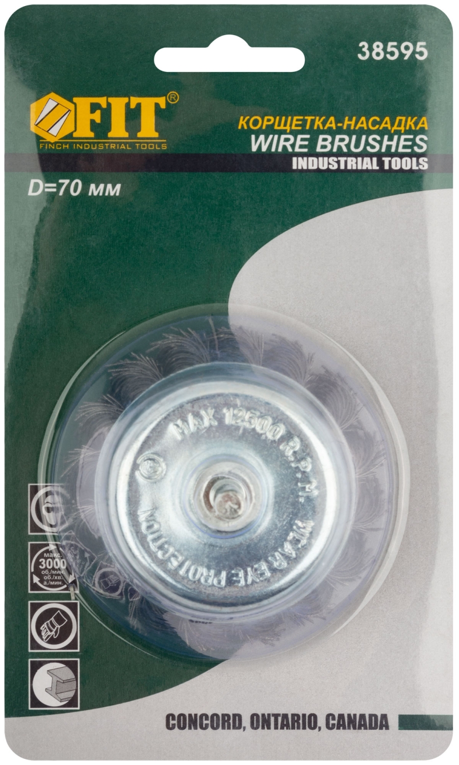 Корщетка-колесо, со штифтом, витая стальная проволока 70мм
