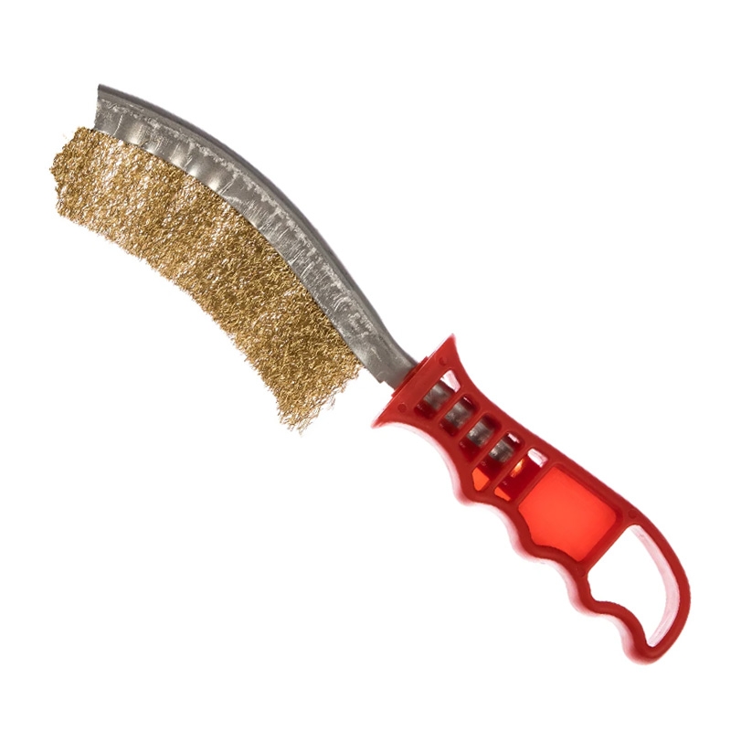 Корщетка предназначена для снятия старой краски и ржавчины. Латунированная стальная волнистая проволока имеет продолжительный срок службы. Вогнутая форма обеспечивает удобство при обработке криволинейных поверхностей.