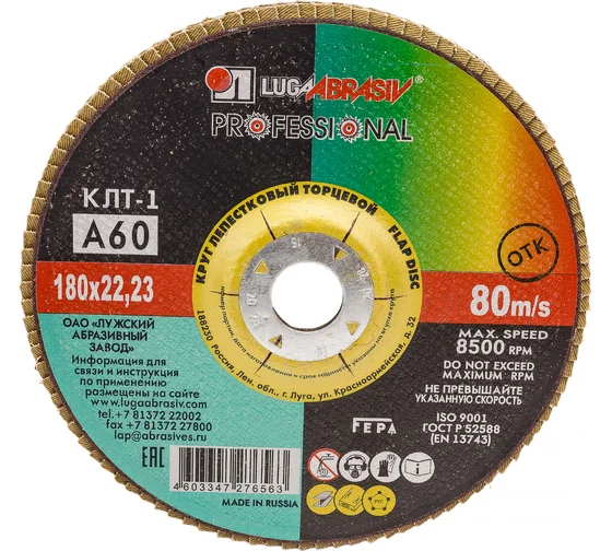 Круг лепестковый торцевой плоский КЛТ1 (180х22 мм; А 60; 14А 25/Р60) Луга D91018022140250 предназначен для ручных шлифовальных машин. Применяется для плоского шлифования, обработки кромок и сварных швов деталей и конструкций из различных марок сталей, цветных металлов и древесины. Круг работает тихо, устойчиво, без прижогов, оставляя холодными обработанные поверхности, обеспечивает максимальный съем материала.