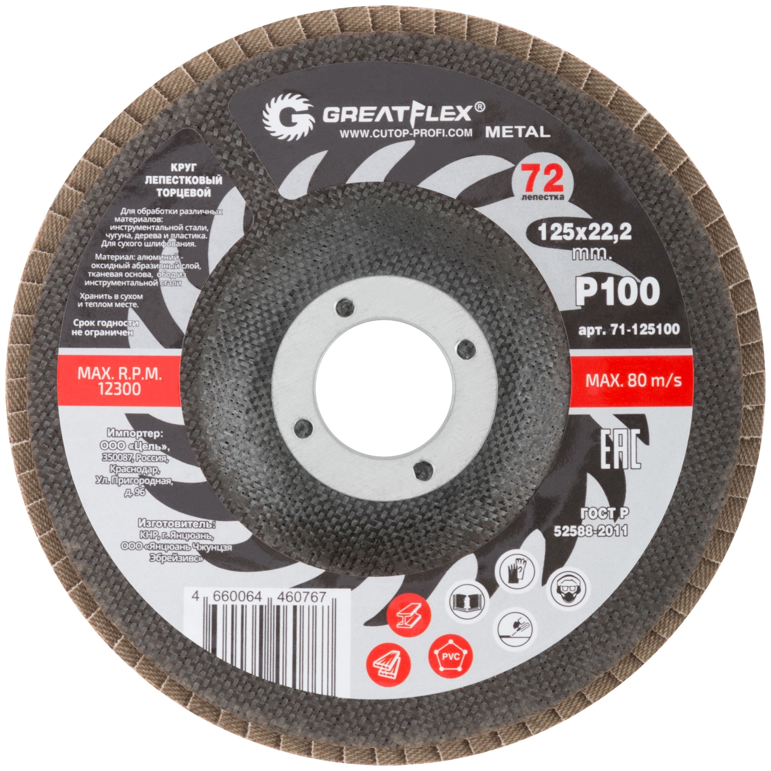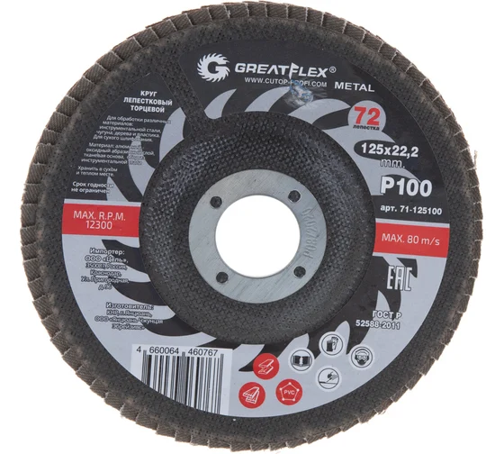Круг лепестковый торцевой GREATFLEX (72 лепестка) 125х22,2 мм Р100