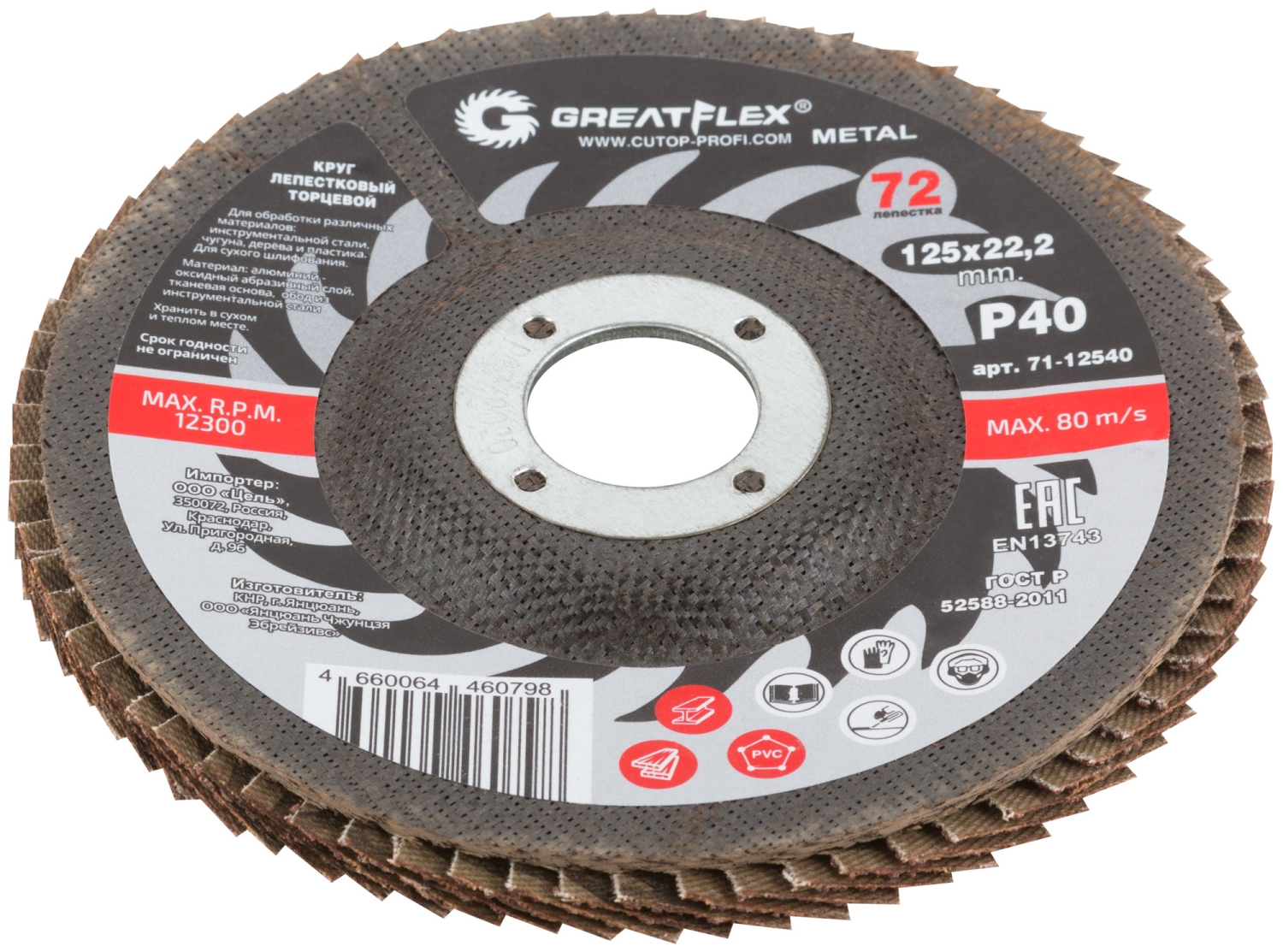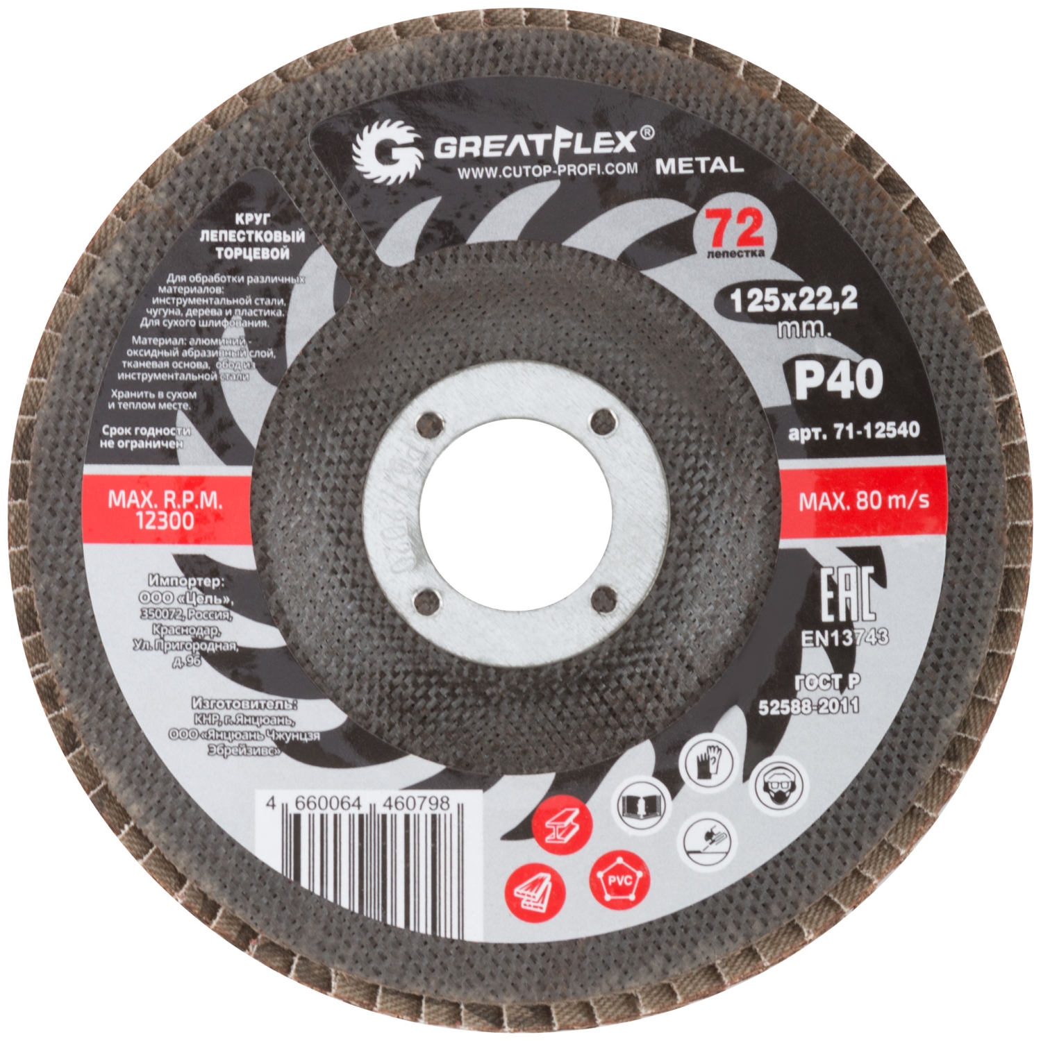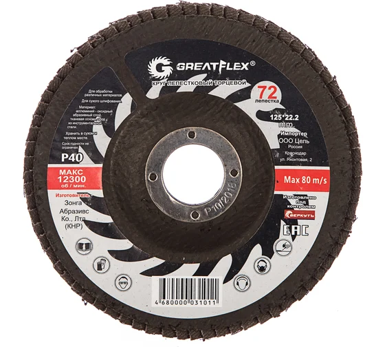 Круг лепестковый торцевой GREATFLEX (72 лепестка) 125х22,2 мм Р40