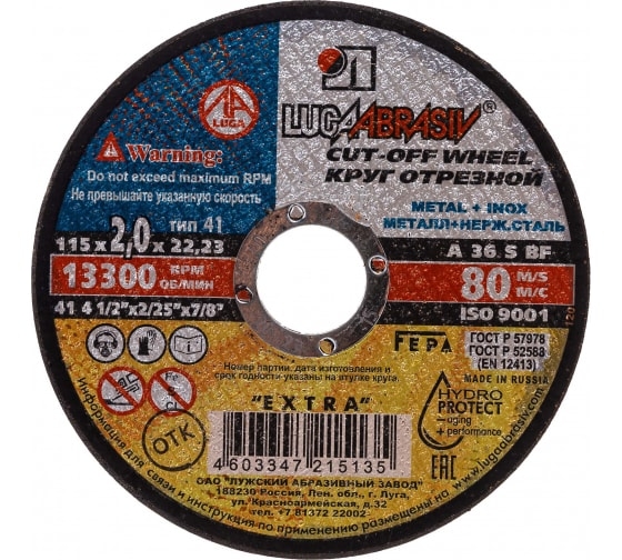 Круг отрезной по металлу Луга 73662, 180 х 2,0 х 22,2 мм, используется совместно с УШМ только для сухого реза. Он пригодится при проведении строительных и ремонтных работ в частной мастерской или бытовых условиях.