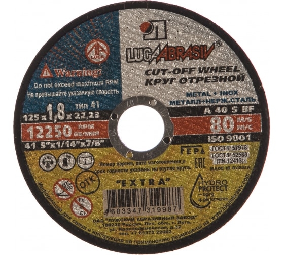 Круг отрезной мет+нерж 125х1,4х22 мм A 40 S BF 80 Луга D11001252214000 1 шт.