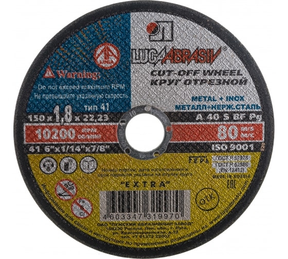 Круг отрезной мет+нерж 150х1,8х22 мм A 40 S BF 80 Луга