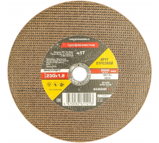 Круг отрезной мет+нерж №17 230х1,8х22 мм Профоснастка Эксперт тип 41