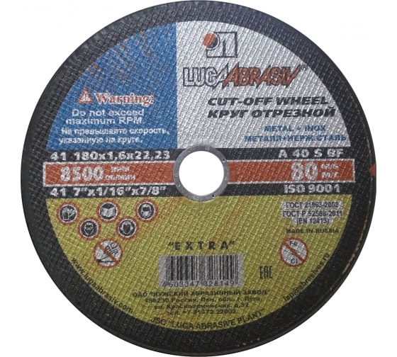 Диск отрезной по нержавеющей стали A40 S BF (180х1.6х22.2 мм) Луга D11001802216000 идеально подходит для резки деталей и изделий из нержавеющей стали.