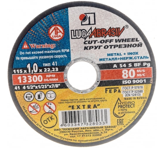 Круг отрезной мет+нерж A 54 S BF 80 Луга