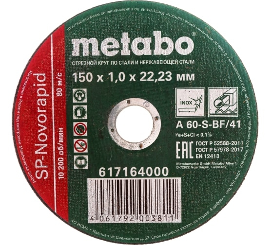 | Круг отрезной по металлу 150х2,0х22,2 мм МЕТАВО | 617165000 | 1 шт. |