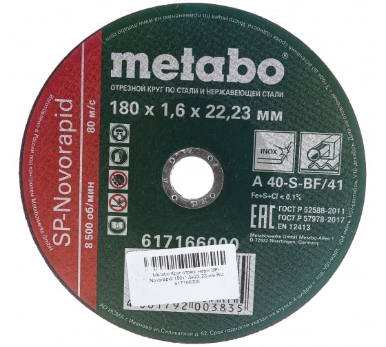 | Круг отрезной по металлу 180х2,5х22,2 мм МЕТАВО | 617167000 | 1 шт. |