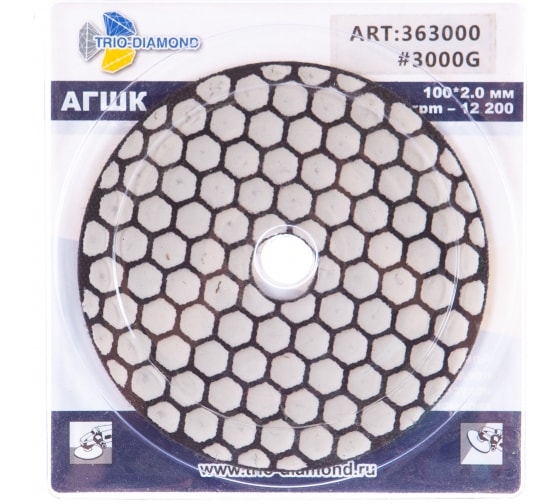 Алмазный гибкий шлифовальный круг Черепашка 100 № 3000 TRIO-DIAMOND 363000 предназначен для ручных шлифовальных машин. Применяется для сухой обработки бетонных конструкций, камня, изделий из мрамора и гранита. Круг изготовлен на гибкой основе, имеет алмазное напыление и крепится при помощи липучки.