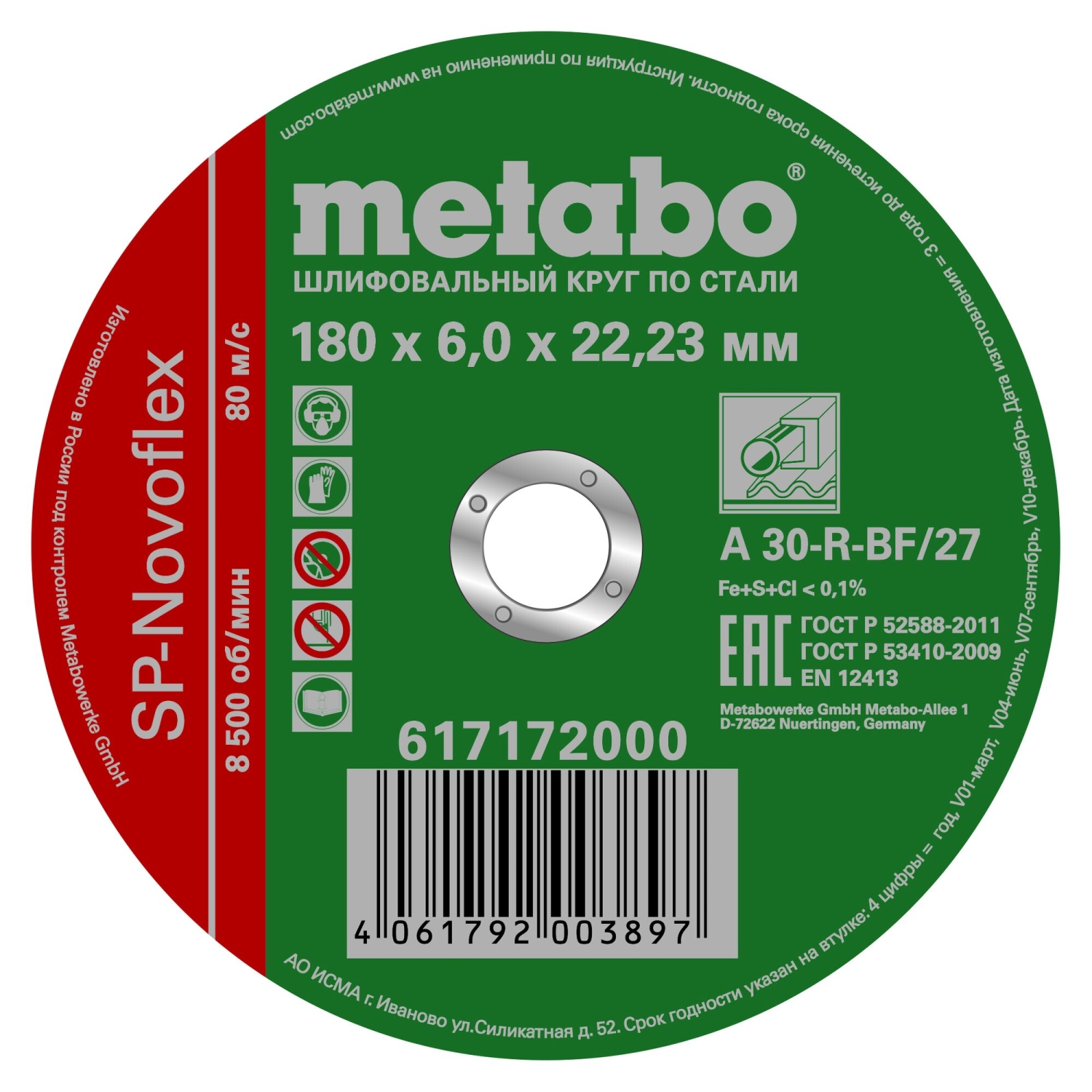 | Круг шлифовальный 180х6,0х22,2 мм МЕТАВО | 617172000 | 1 шт. |