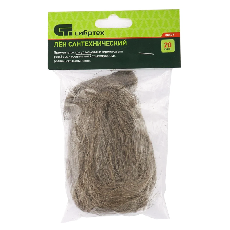 Лен сантехнический 20 г Сибртех используется в качестве уплотнителя резьбовых соединений. За счет термостойкости легко выдерживает температуру до 160 °С, поэтому пригодится при монтаже паровых систем и тепло-водоснабжения. Лен не разрушается в процессе эксплуатации, благодаря чему обеспечивает надежную герметизацию. Преимущества Тонкий однородный чесаный лен за счет своей универсальности подходит для соединений любого типа. Экологически чистый материал не вызывает аллергии, предотвращает размножение бактерий и не гниет. Лен обладает высокой прочностью, поэтому прослужит долго. При намокании лен набухает, поэтому он способен перекрыть протечку.