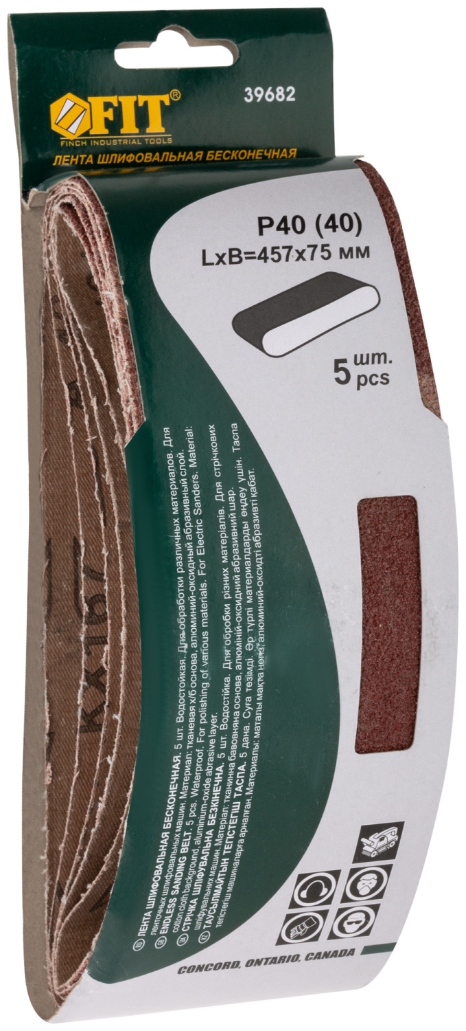 Ленты шлифовальные бесконечные, водостойкие, тканевая основа, 75 х 533 мм, 5 шт. Р 40 39692 1 шт.