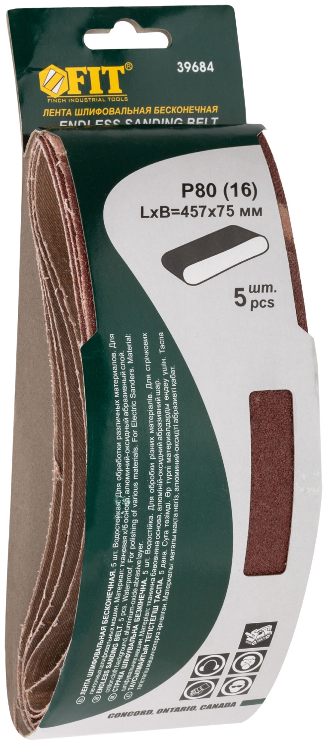 Ленты шлифовальные бесконечные, водостойкие, тканевая основа, 75 х 457 мм, 5 шт. Р 80