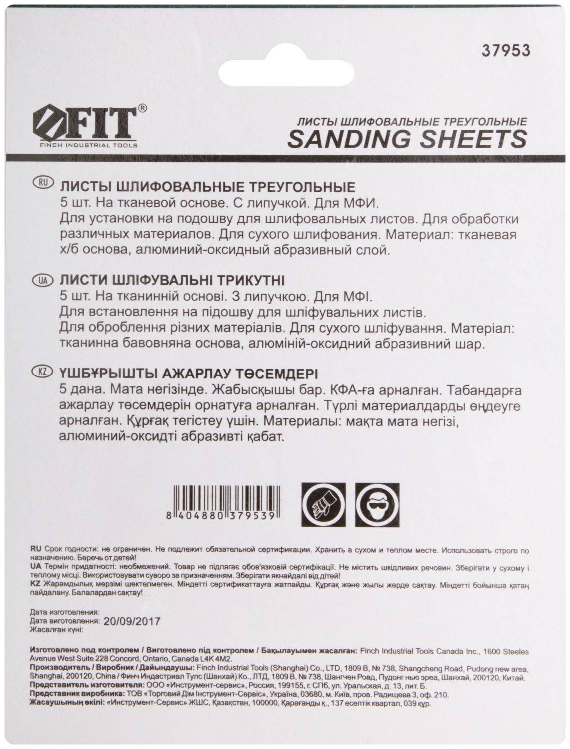 Листы шлифовальные, тканевая основа, треуг., 80 мм, 5 шт.