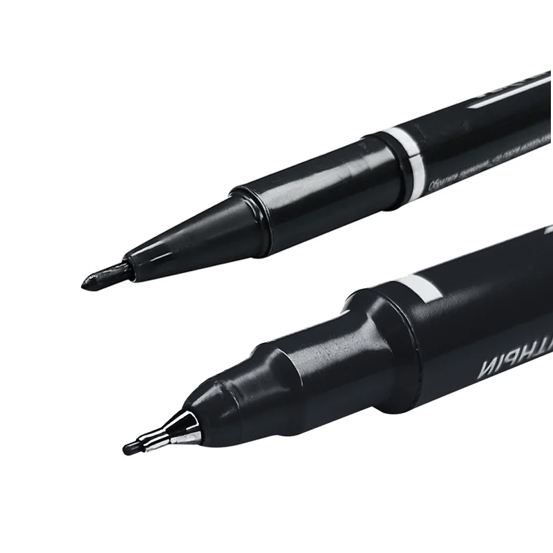 Длин маркера 140 мм. Водостойкий. Имеет тонкую форму наконечника. Этот инструмент можно использовать на различных поверхностях, включая картон, стекло, металл, пластик, дерево, резину, бумагу и керамику.