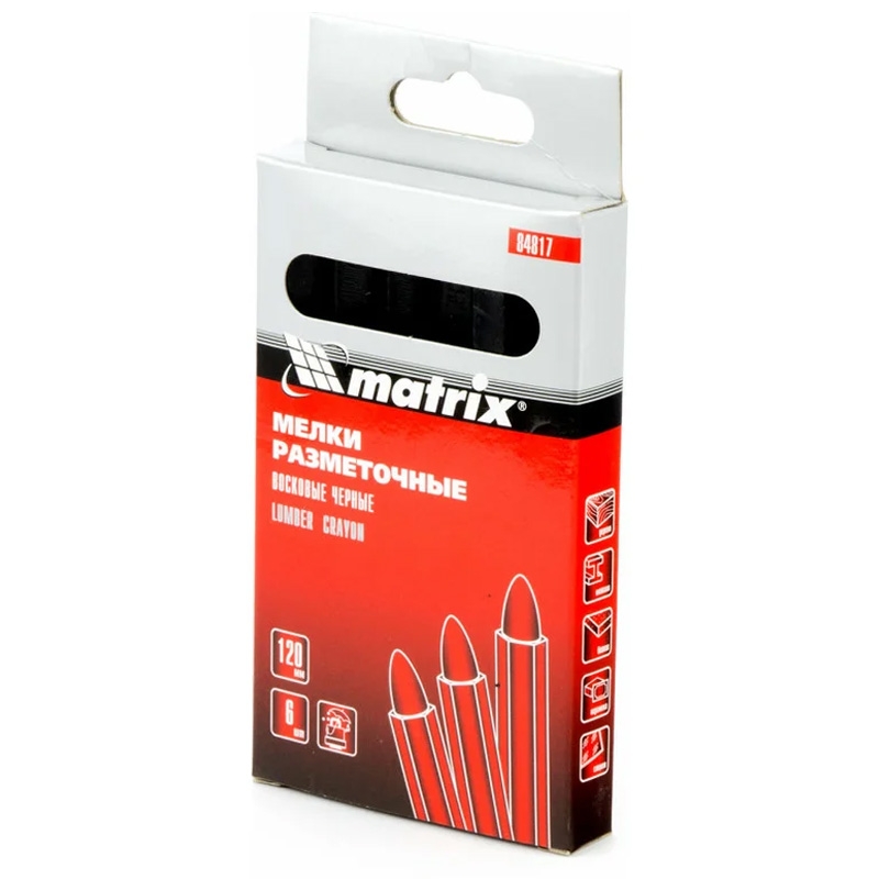 Мелки разметочные 120 мм восковые, черные 6 шт, Matrix