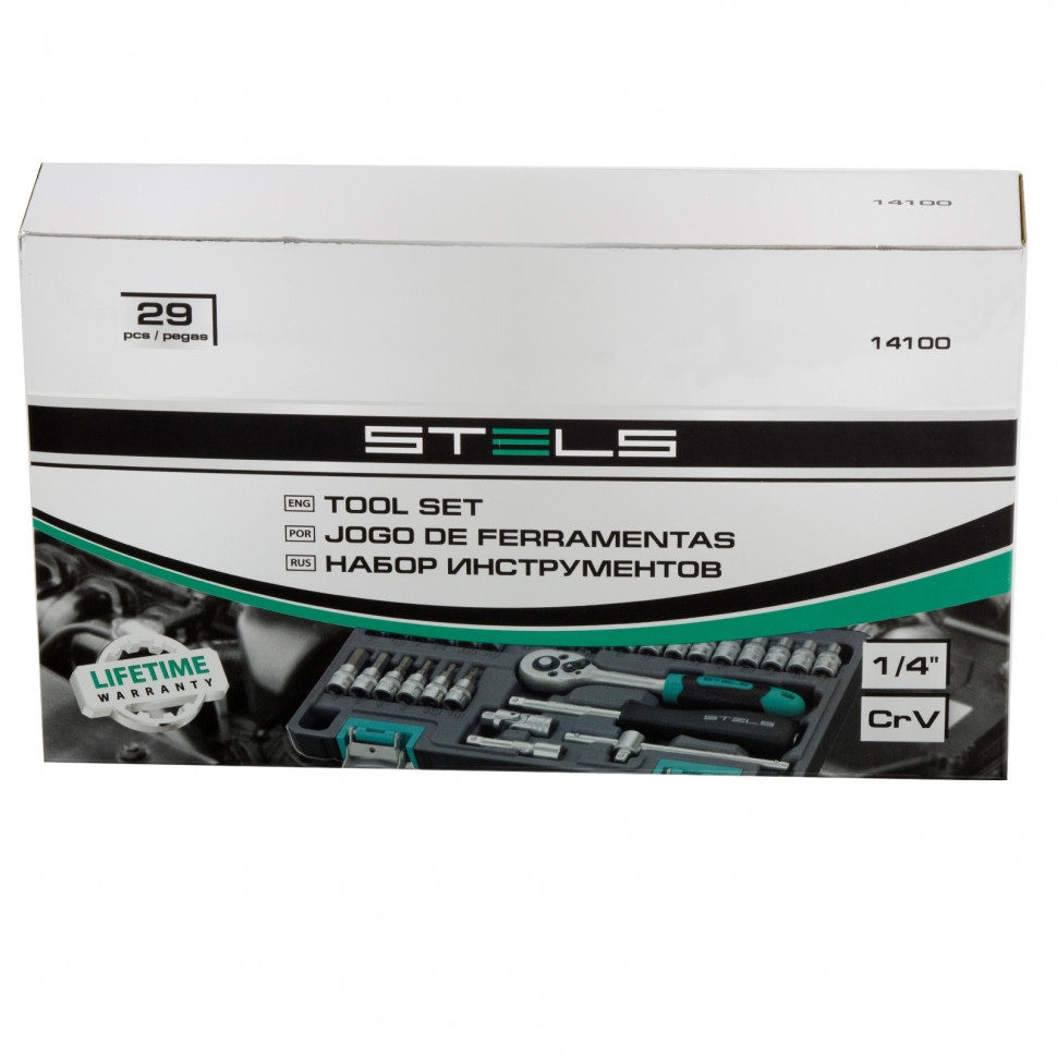 Набор инструментов 29 предметов 1/4 CrV пластиковый кейс Stels