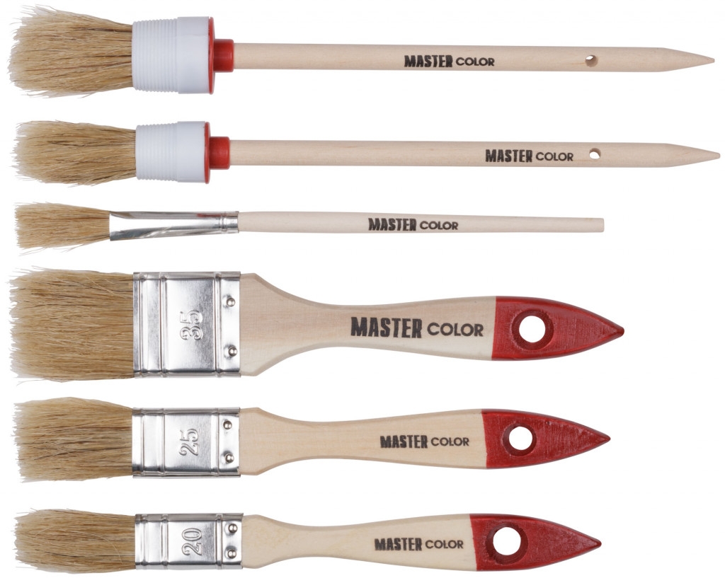 Набор кистей, флейц.20,25,35 мм, круглая d-35,25 мм, для подкраски, дерев.ручки